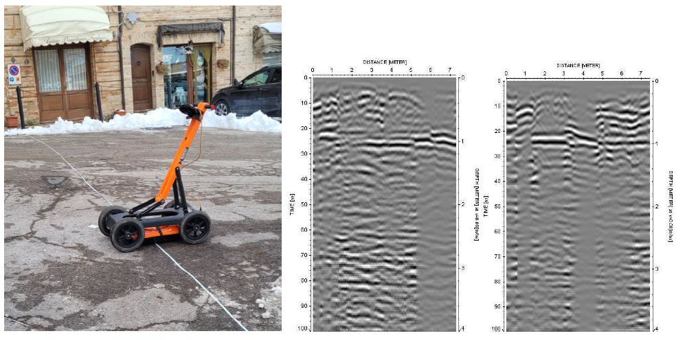 Il metodo d’Indagine georadar o G.P.R. (Ground Probing Radar) è un sistema di indagine geofisica adatto alle basse profondità del sottosuolo. Si basa sulla generazione di onde elettromagnetiche (radiofrequenze) a bassa frequenza (per una maggiore penetrazione) oppure ad alta frequenza (per una migliore risoluzione e qualità dell’immagine radar). Queste vengono inviate nel terreno con il fine di registrare le discontinuità dei segnali riflessi in relazione al tempo impiegato per ritornare al ricevitore. Le durate e le ampiezze sono funzione dell’interfaccia di separazione dei differenti materiali dielettrici (isolanti). La strumentazione è costituita da antenne emittenti e riceventi che, a seconda della frequenza d’esercizio, possiedono diversi valori di portata e risoluzione. Ne deriva che un aumento della frequenza genera un incremento della risoluzione ma una diminuzione della profondità di esplorazione. Il metodo georadar o G.P.R. è utilizzato per: indagare strutture nascoste, cavità e sottoservizi; ricercare danni strutturali e posizioni di armature; dedurre gli spessori di rivestimento gallerie, etc.