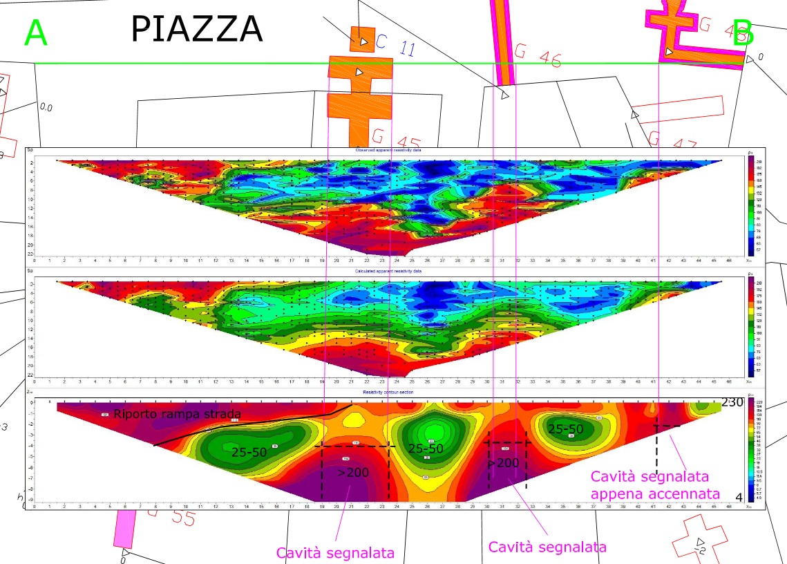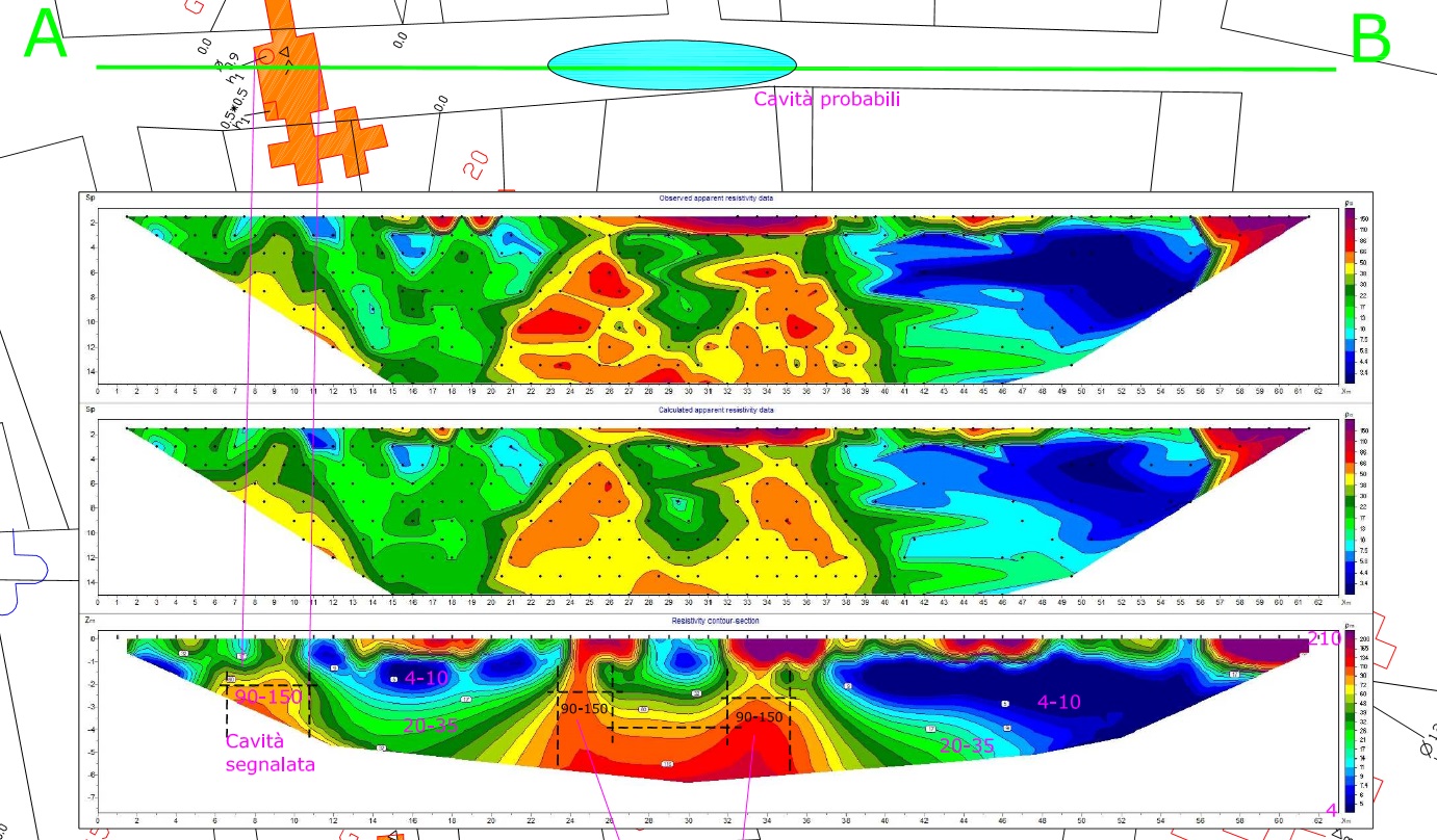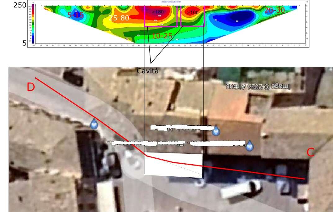 Altro caso di individuazione di cavità, questa volta le volte si trovano a – 4 m dal piano stradale.